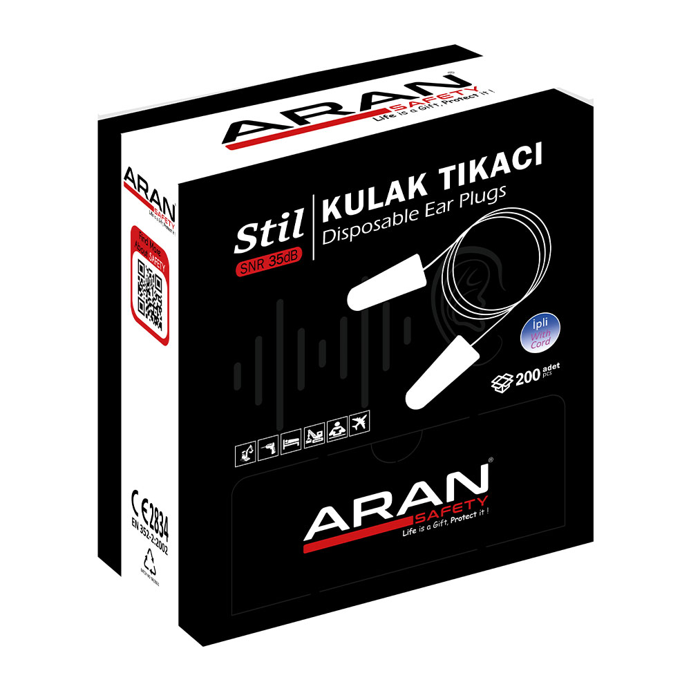 Temel Özellikler: ARAN SAFETY STIL tek kullanımlık kulak tıkaçları, çevresel gürültüyü büyük ölçüde azaltarak işitme hasarına karşı basit ve etkili koruma sağlar. Her biri ayrı hijyenik paketli Stil kulak tıkaçları kordonlu ve kordonsuz olmak üzere iki farklı seçenek ile satışa sunulmaktadır. PVC kordon, tıkaçların kullanmadığınız süre boyunca boynunuzda asılı kalarak kaybolmasına engel olur.